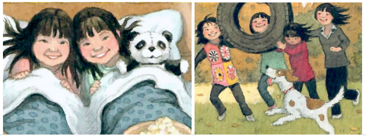 My last piece of criticism for this book is in the illustrations. They are very endearing, but the illustrator makes all of the Chinese girls have the the same haircuts and look exactly the same. Though some features are very universal, like dark hair and eyes, Chinese people do not look identical.