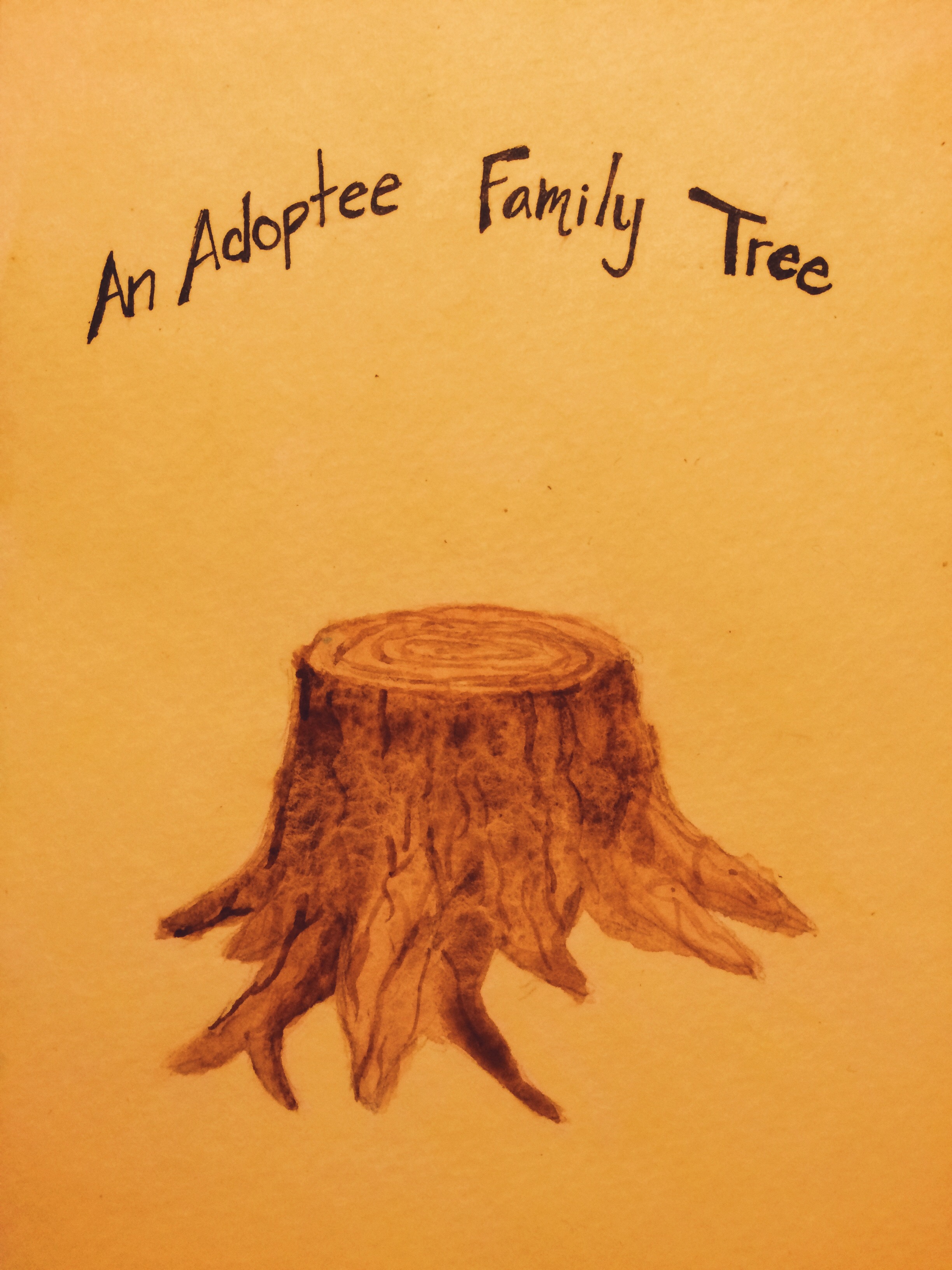 I remember being asked on multiple occasions to make a family tree as a school assignment. This subject is broached somewhat in the book, Star of the Week, by Darlene Friedman and in a few other books, as well. In lieu of a standard family tree, I’ve come up with some alternative visions of my family tree. I watercolored this one today: Ripped From My Roots: An Adoptee Family Tree Pt. 1